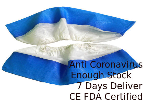 Pp avec la chaussure de revêtement de CPE couvre, de la ficelle, de main élastiques ou fait à la machine, pp non tissés de couleur à moitié enduite, bleue/blanche de revêtement de CPE.